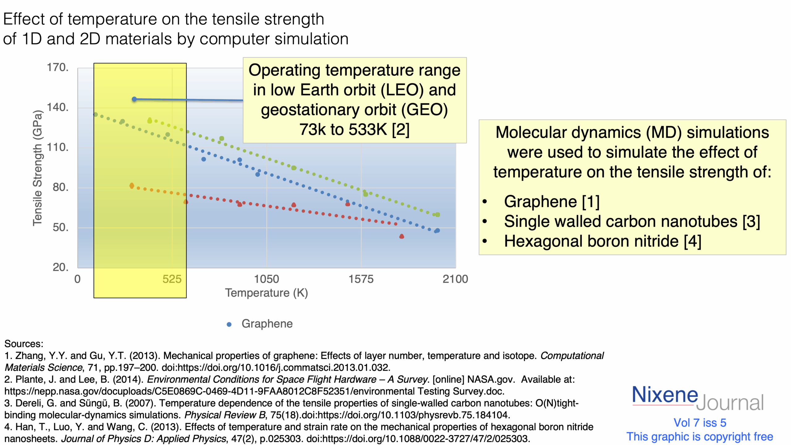 v7 i5 Effect of temperature on the tensile strength of 1D and 2D materials by computer simulation